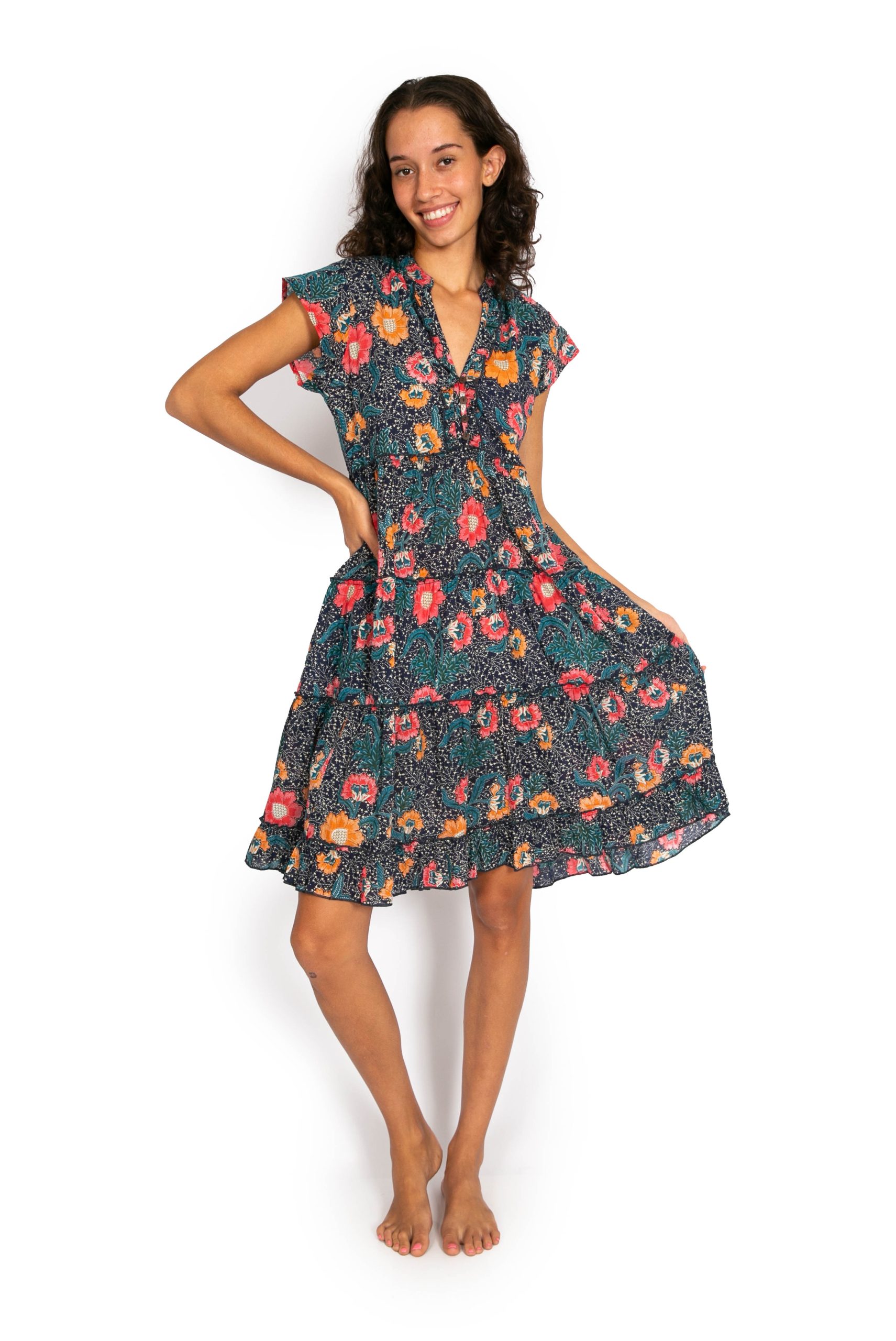 The cotton Amore Dress is a relaxed easy fit. It’s comfortable, light and beautiful. Making the Amore Dress one of this seasons most popular dresses! Featuring cap sleeves and a classic tiered dress shape. The Amore dress is such a fun and easy summer dress!