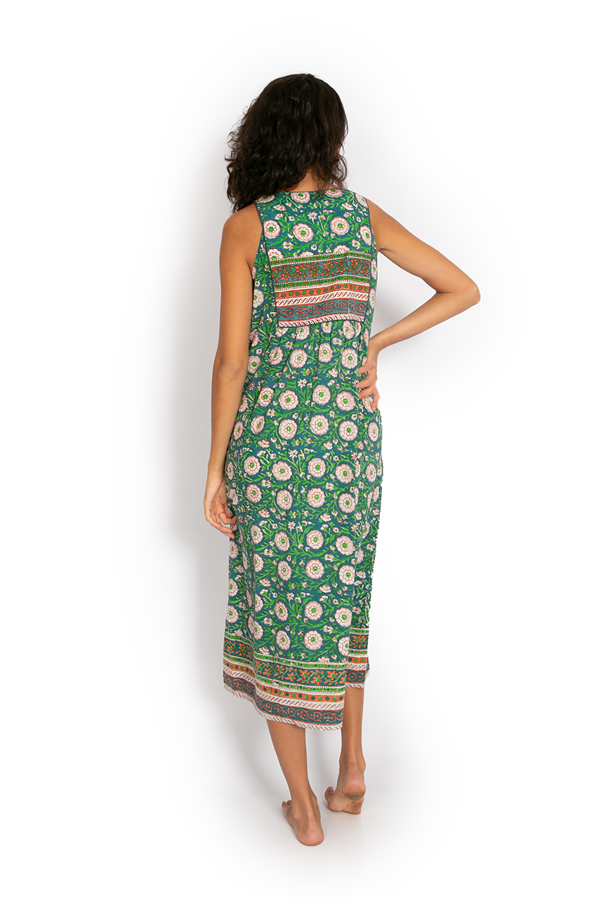 Jaipur Dress Long – Teal Flower Block Print
