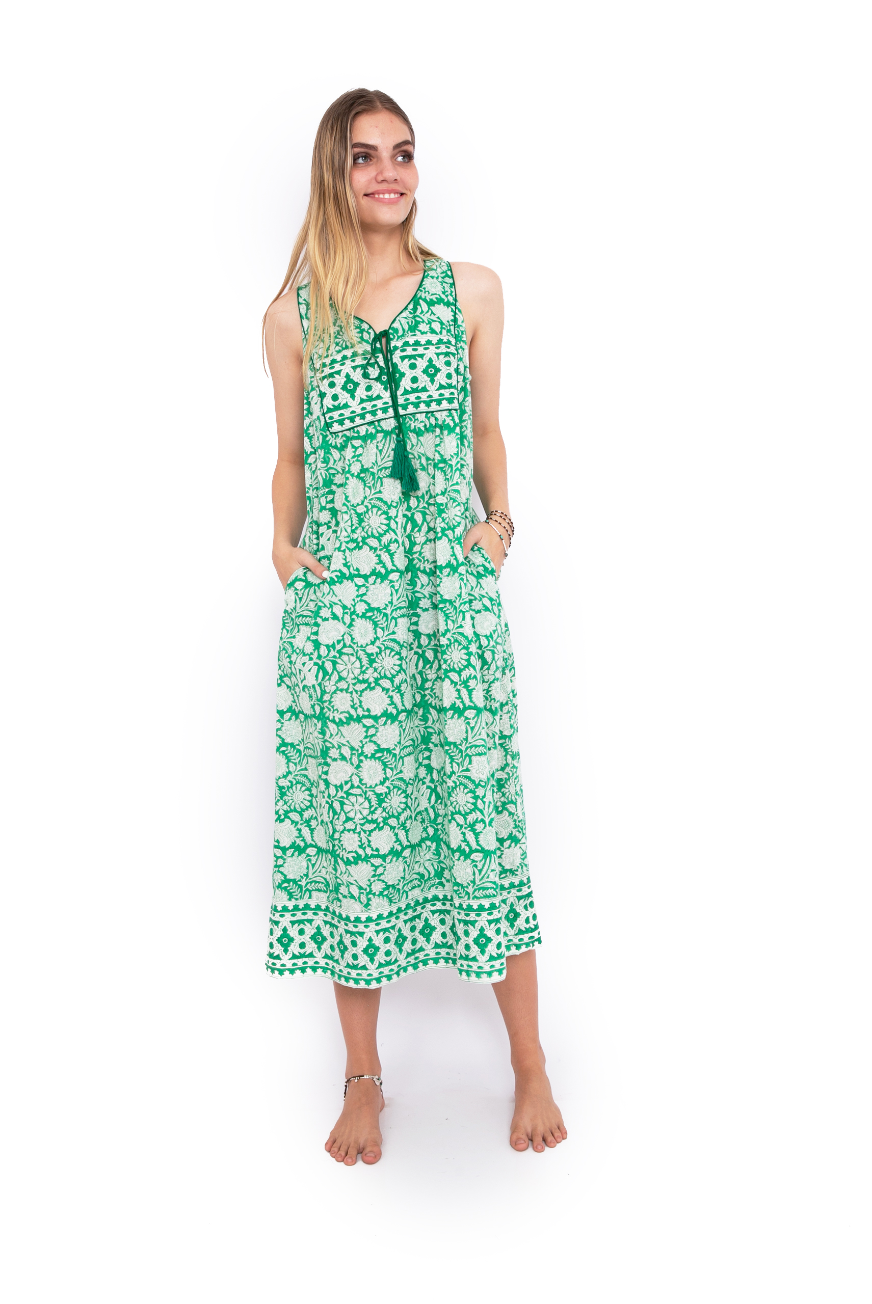Home > Shop > Jaipur Dress Long – Tropical Green Block Print