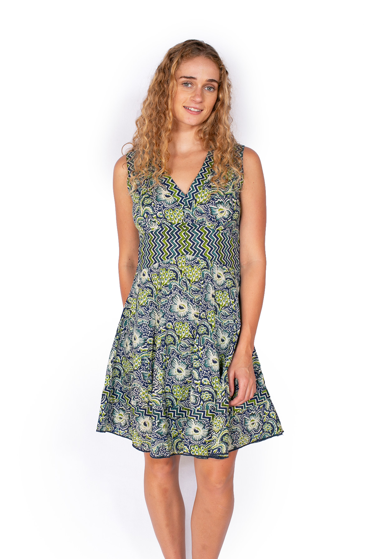Beautiful cotton V neck dress with a wide band under the bust for shaping and a side zip for the perfect fit. Always looks amazing on! This season’s most popular dress!