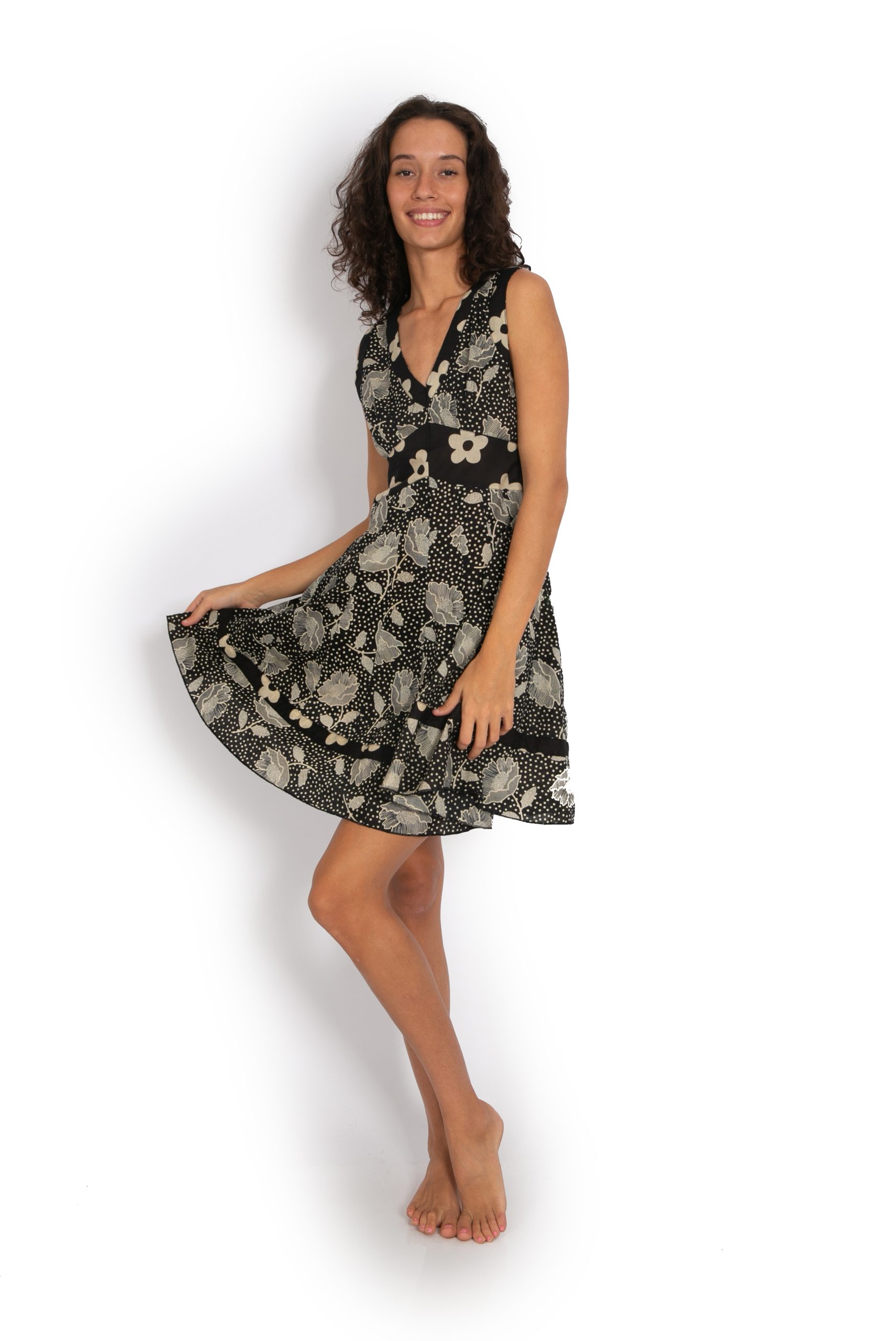 Beautiful cotton V neck dress with a wide band under the bust for shaping and a side zip for the perfect fit. Always looks amazing on! This season’s most popular dress!