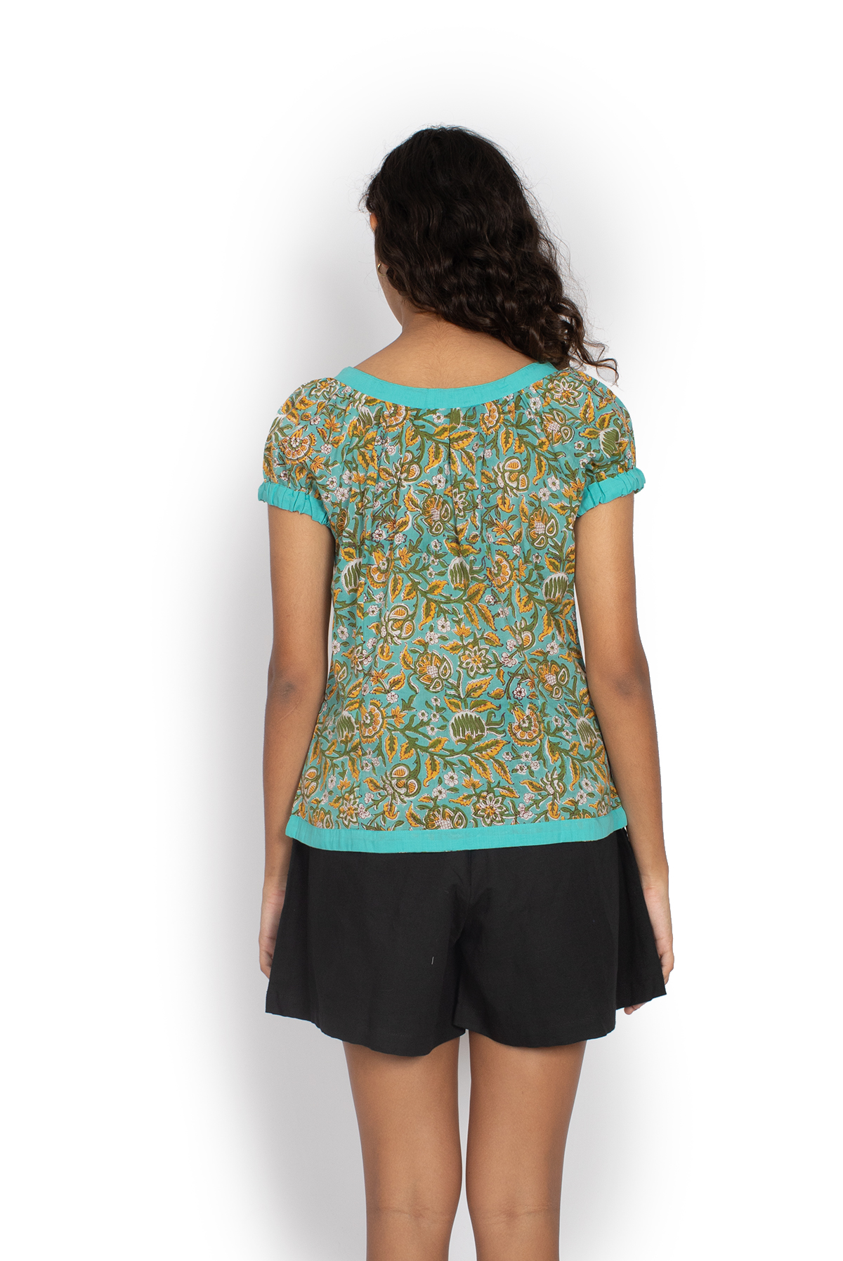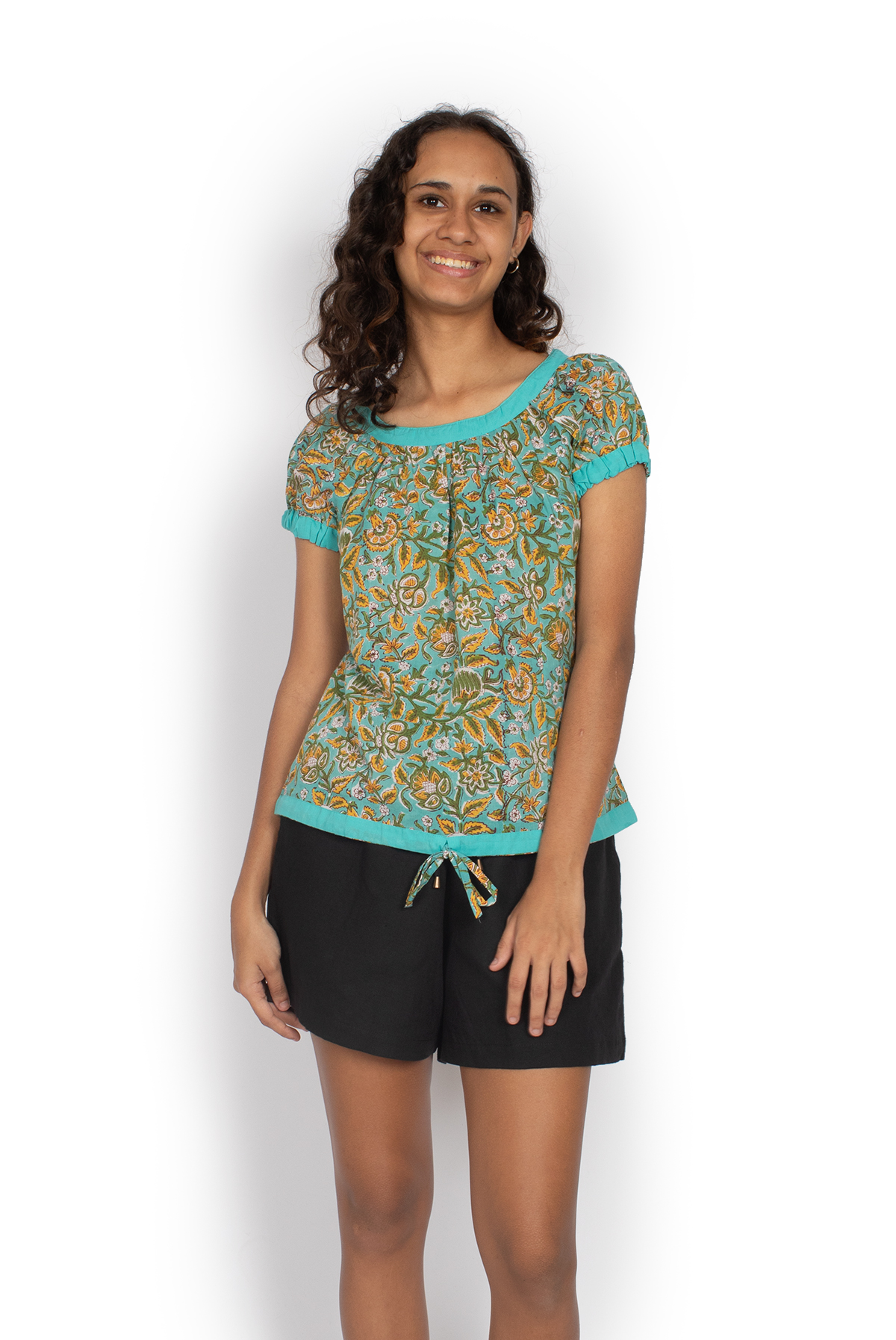 These sweet short sleeve cotton tops are ideal for a hot summers day, protecting the shoulders from the harsh summer sun, whilst a small elastic trim in the sleeve allows for greater ease of movement. Perfect with cotton pants or a skirt for work or throw over your favourite jeans or shorts for a more casual look.