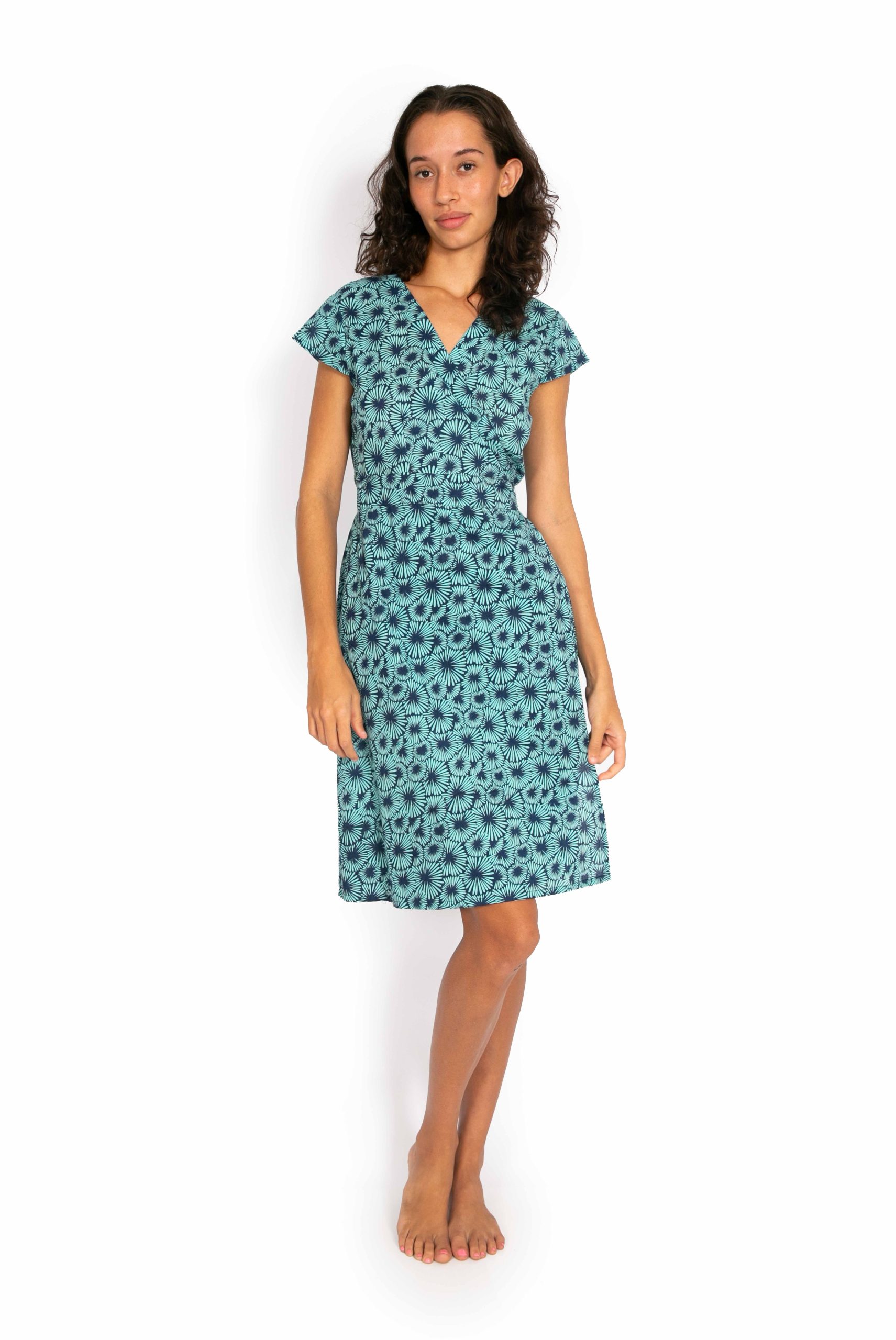 The design of the Rose Wrap Dress has been perfected over the years, fitting the body like a glove. It wraps comfortably and perfectly. It has cute cap sleeves and is designed to be tied at the back but can also be tied at the side or front. This cotton wrap dress is perfect for every shape and size.