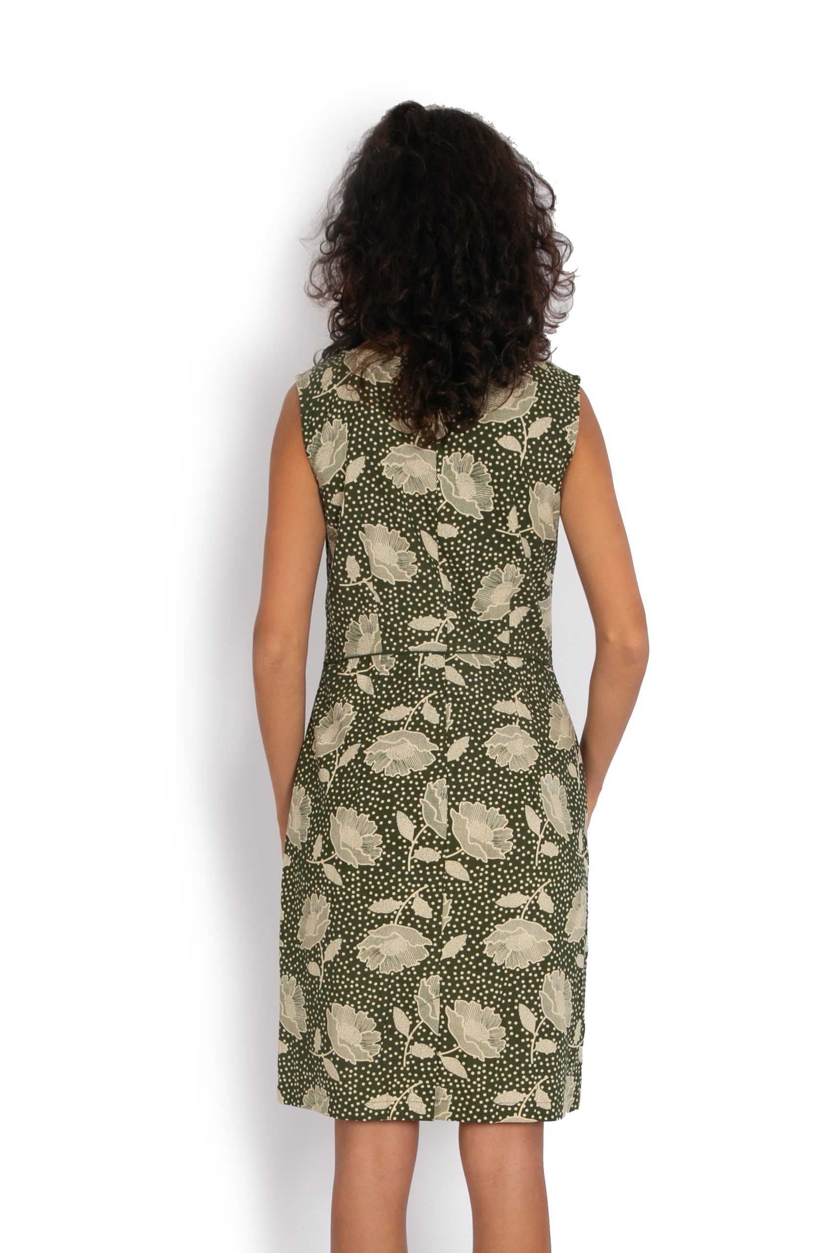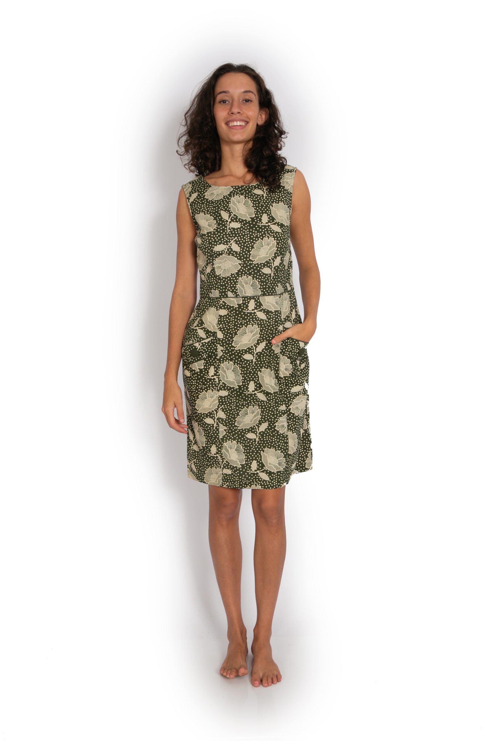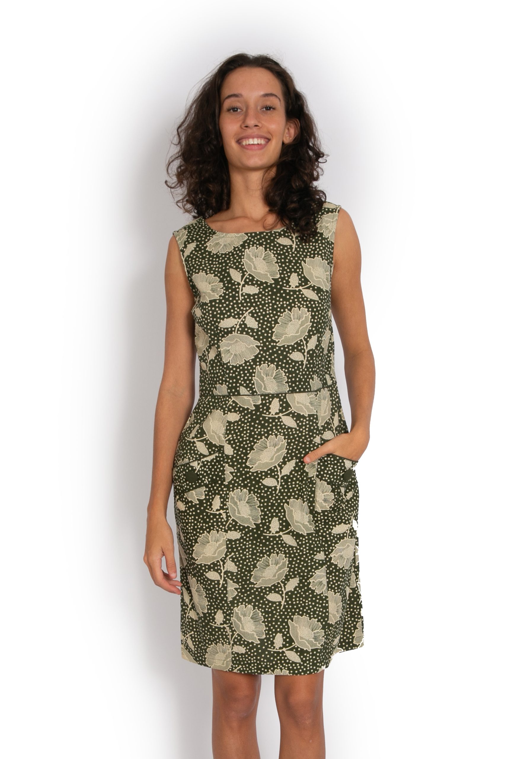 This cotton dress will be your Om Designs office staple. It is a super flattering dress, featuring a full back, hidden side zip and pockets with subtle piping!