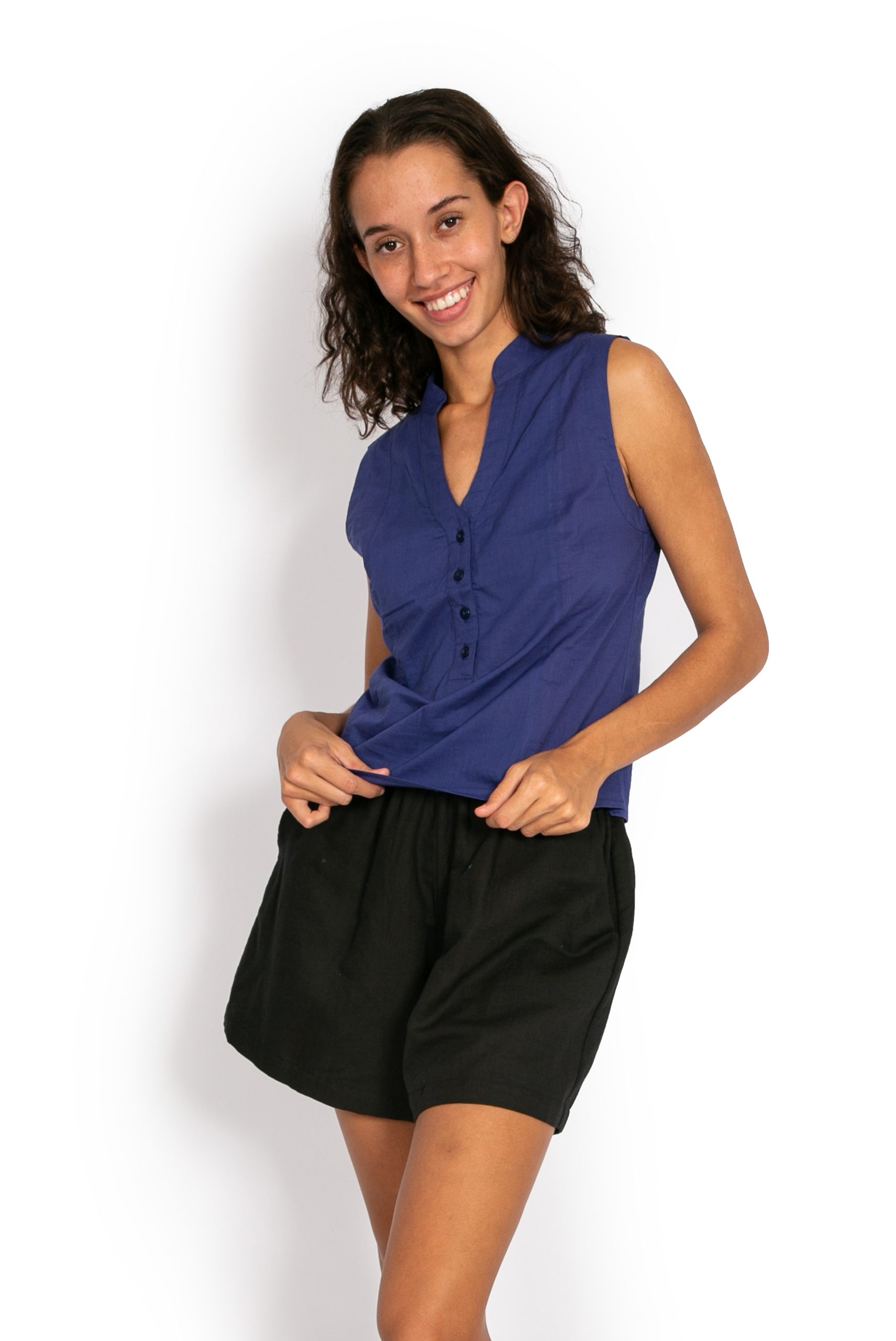 Our most popular cotton top. Works well with all our reversible skirts and pants. You will want one in every colour!